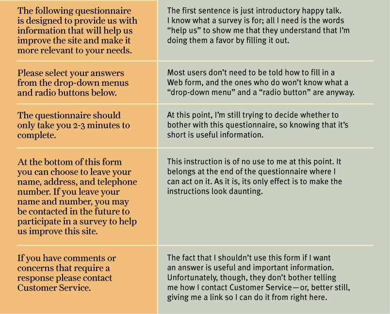 Another major source of unnecessary words comes from instructions. The key thing to understand about instructions is that hardly anyone reads them—at least not until they've attempted to figure things out on their own and failed. And even then, if the instructions are verbose, the chances of users finding the information they need are pretty low.