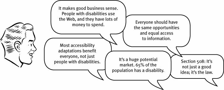 In most organizations, the people responsible for accessibility are usually the designers and developers. When they learn about accessibility, they often encounter the same reasons why it's important: